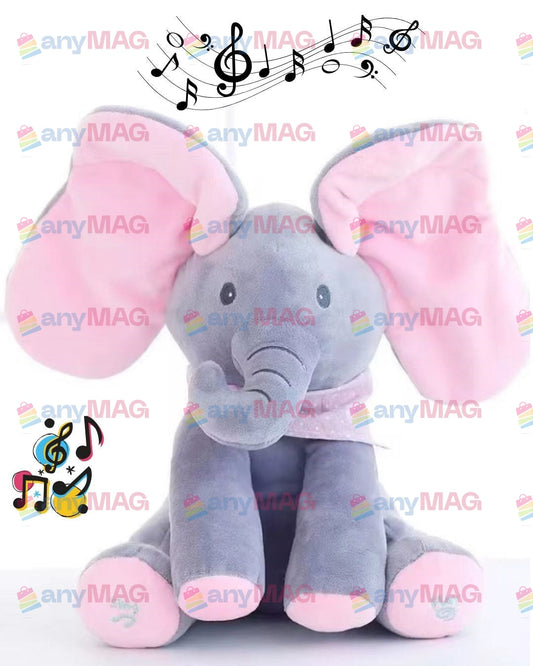 Elefănțel Interactiv din Plus – Cântă, Vorbește și Face „Cucu-Bau”, Mișcă Urechile, Muzical, 30 cm, Roz – Jucărie pentru Copii 1+
