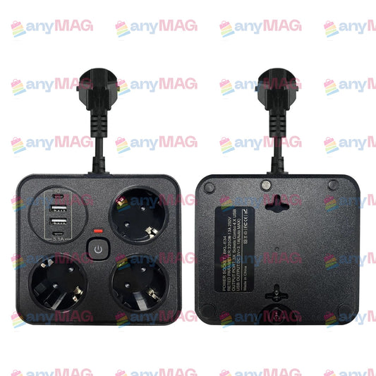 Prelungitor Multifuncțional cu USB – 3 Prize, 3250W, 2 x USB-A, 2 x PD USB-C, Cablu 2M, Tehnologie IQ, Ignifug, Protecție Copii & Supratensiune