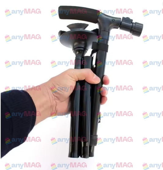 Baston Pliabil LED cu 3 Puncte de Sprijin – Reglabil 84-94 cm, Maner Ergonomic, Anti-Alunecare, Ideal pentru Persoane în Vârstă și Drumeții
