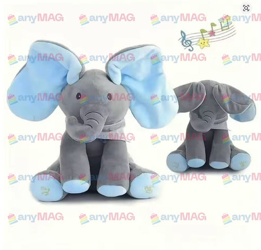 Elefănțel Interactiv din Plus – Cântă, Vorbește și Face „Cucu-Bau”, Mișcă Urechile, Muzical, 30 cm, Albastru – Jucărie pentru Copii 1+