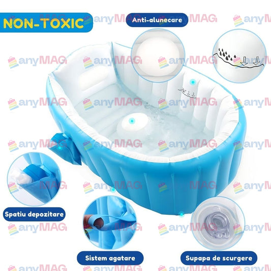 Cădiță Gonflabilă pentru Bebeluși și Copii – Pliabilă, Portabilă, Antiderapantă, Albastră